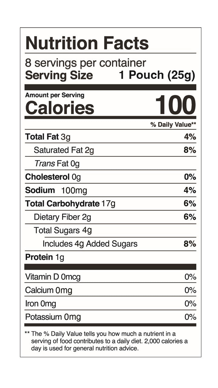 WHEAT FLOUR, CANE SUGAR, PALM OIL†, CHICORY ROOT FIBER, CHOCOLATE CHIPS (Sugar, Unsweetened Chocolate, Cocoa Butter, Soy Lecithin [Emulsifier], Vanilla Extract), NATURAL FLAVORS, SALT, BAKING SODA, SOY LECITHIN.